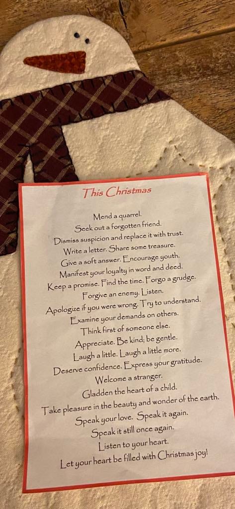 Today I’m feeling a little under the weather, so will be taking my own advice and enjoying a day of rest. I pulled this poem out of my archives. It was given to me long ago from a co-worker and I’ve held on to it for all these years. The messages it conveys resonate with me, and I hope it will with you too. I'll be having a quiet day, off electronics, and enjoying the stillness of the morning, with only the warmth of my fireplace and the glow of my Christmas tree lights. May your day be filled with joy!