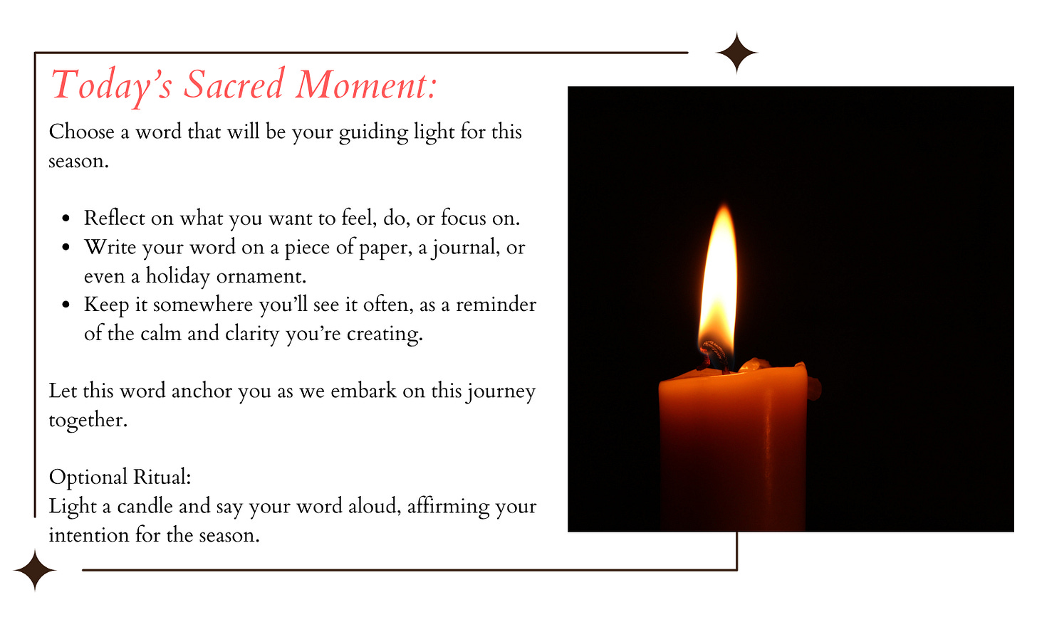 Welcome to the first day of your Sacred Traditions Advent Calendar! Today is all about setting the tone for the season by grounding yourself in intention.