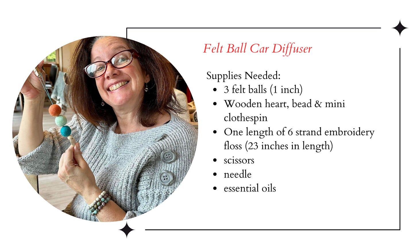 DIY #1: Christmas is in the air. Make a Felt Ball Car Diffuser and add your favorite holiday scent.