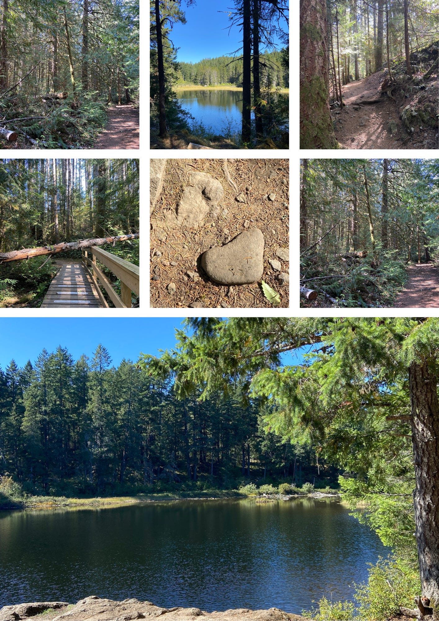 My husband was convinced he knew what side of the lake it resided on by the type of tree in the photo. So off we went. Up hills, over exposed tree roots and past other hikers, secretly hoping they hadn’t found it first.