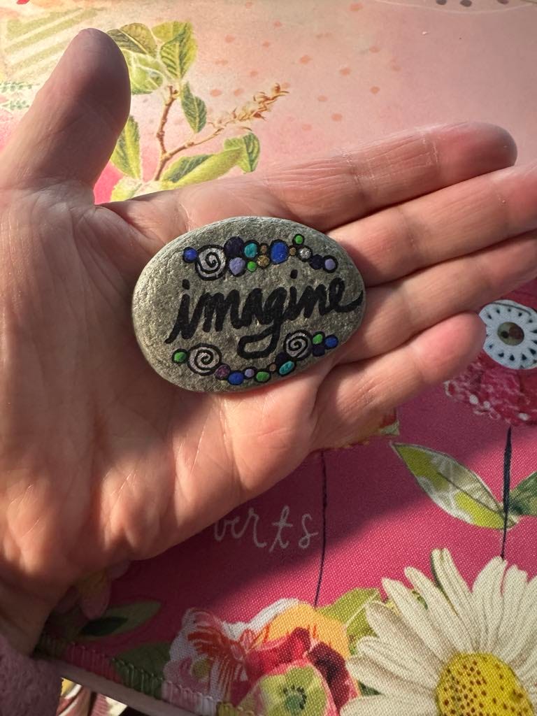 🔮 Enchanted Object – Choose a small item (a stone, a ring, a piece of ribbon) and infuse it with a special intention—joy, confidence, creativity, or whatever magic you need this week. Carry it with you as a secret talisman, letting it remind you of your own inner magic whenever you touch it. I’m choosing my ‘imagine’ stone and setting this intention—"I awaken the power of imagination, bringing my stone to life with boundless possibilities."
