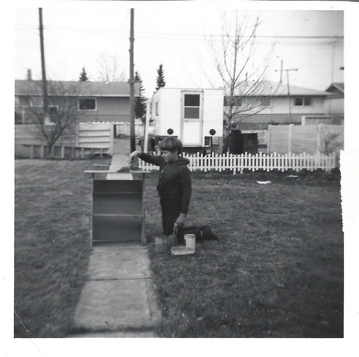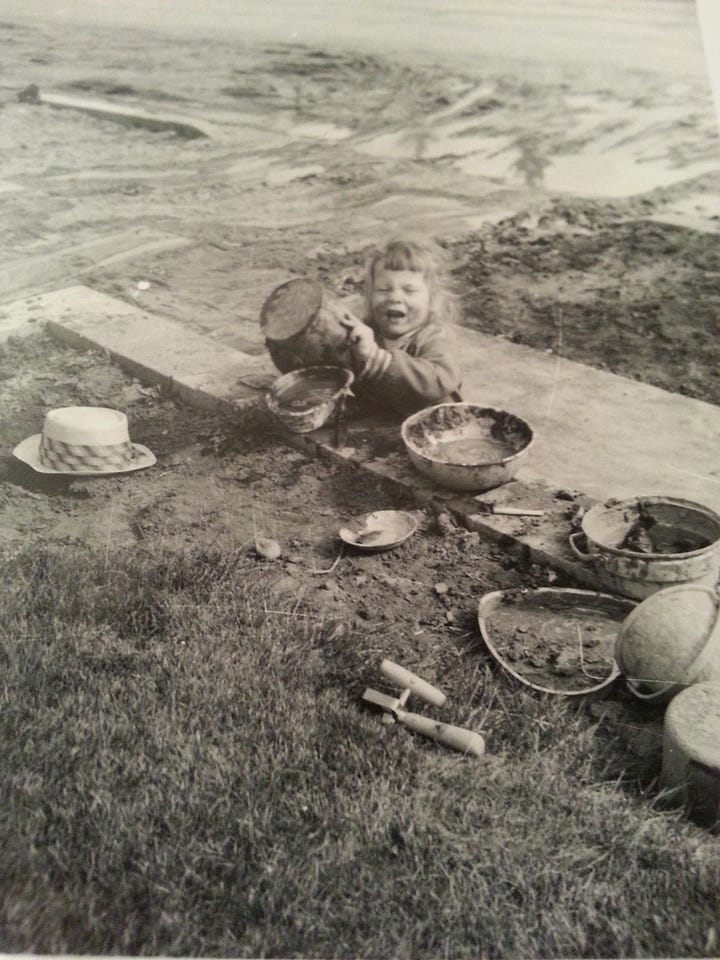 These photos - me as a little girl, hands deep in mud, completely lost in the serious business of making mud pies, and me as a young girl, maybe nine or ten, painting a shelf my dad helped me build - focused, a little stubborn, and likely delighted in the outcome. These images make me smile now, because I can see so clearly that this is simply who I am. Making things, building things, bringing something new into the world. It’s in my DNA.