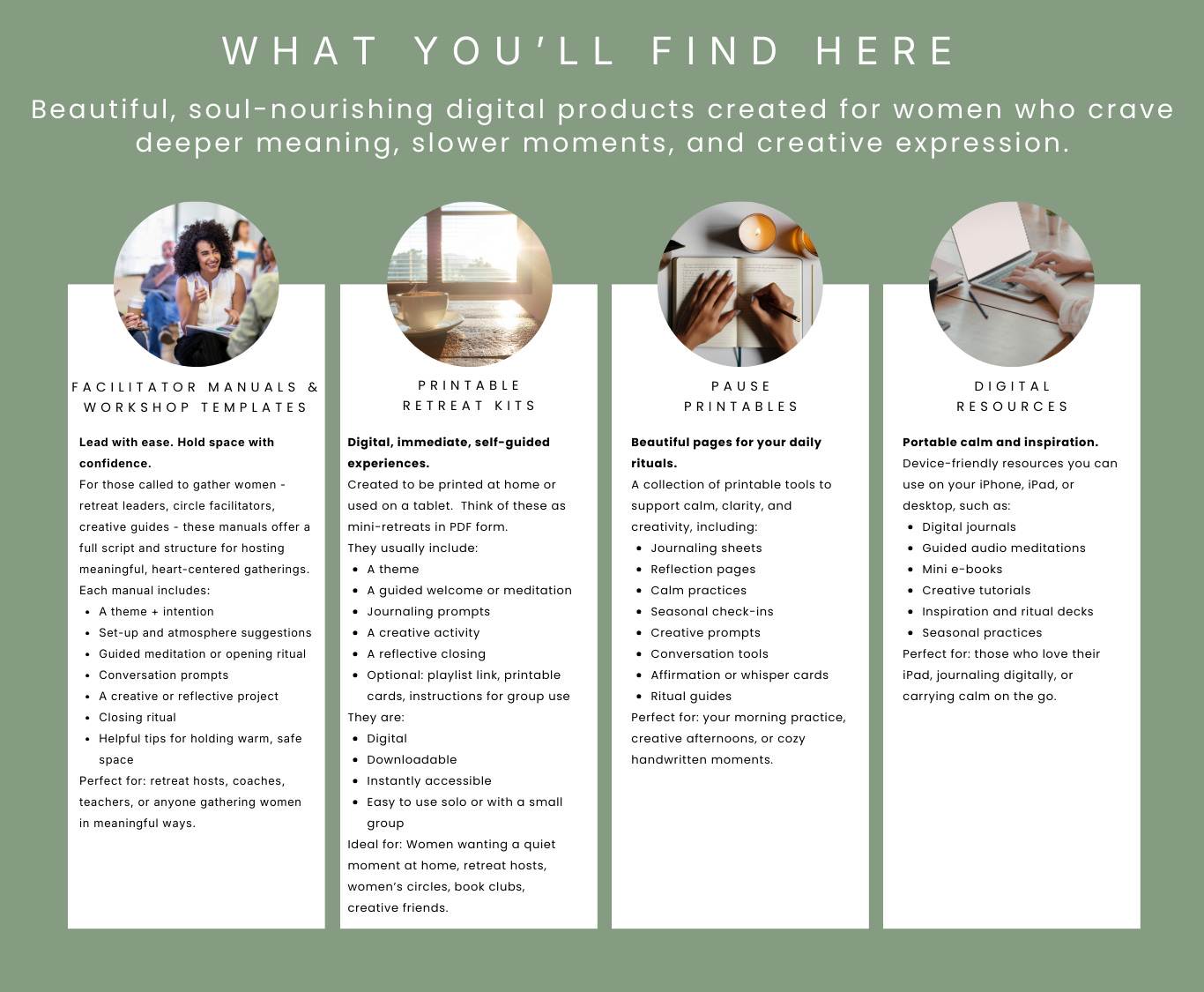 Welcome to The Pause Shop — a thoughtfully curated collection of digital offerings designed to help you slow down, return to yourself, and make space for what matters.