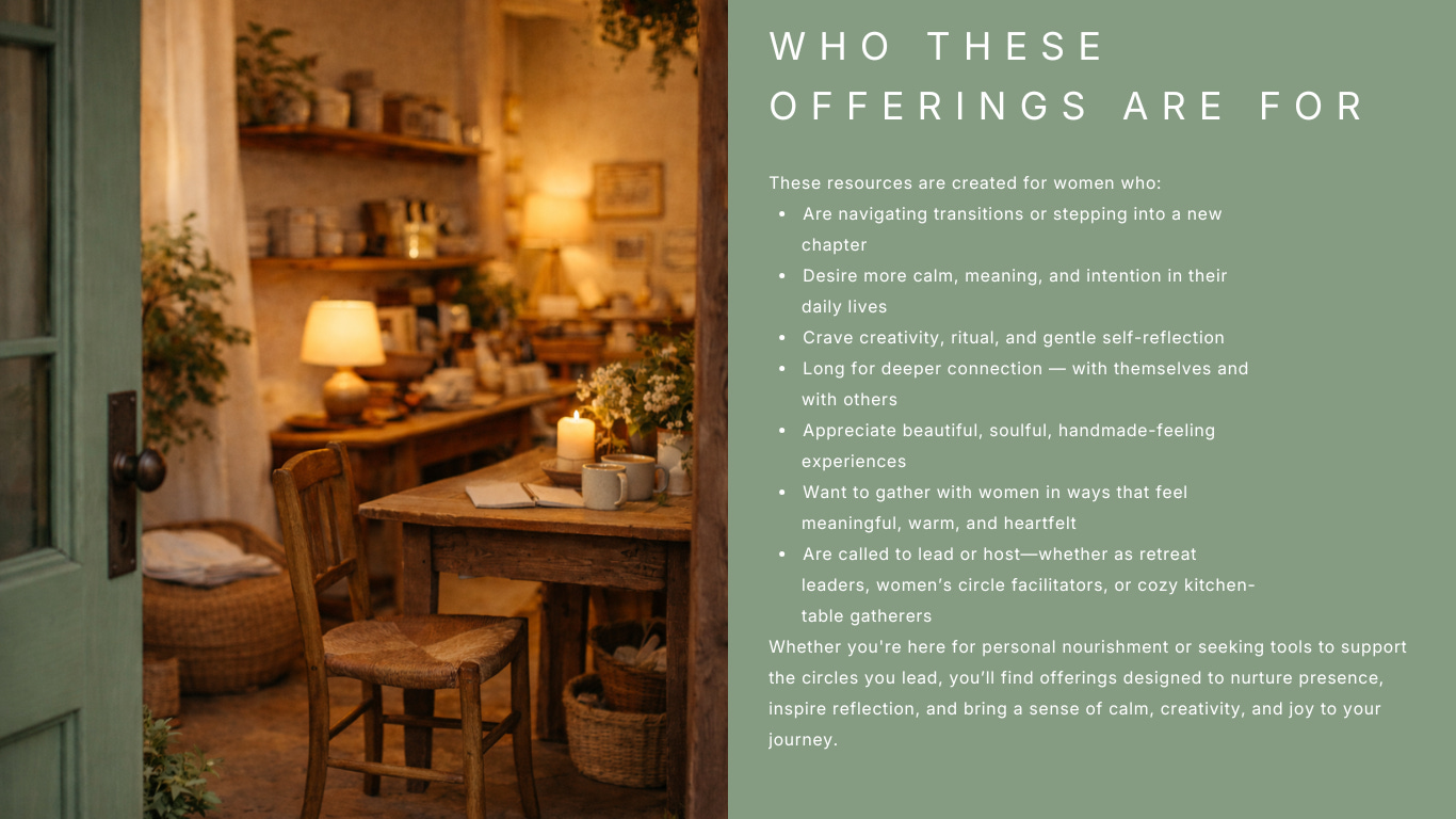 With the same care that fills every gathering, every story, and every handmade detail - this space offers treasures to bring retreat energy into your everyday life.